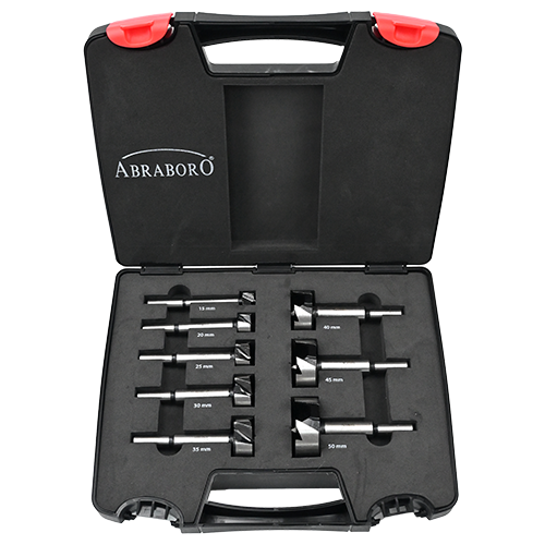 Abraboro 8 részes Forstner fúró készlet, HM keményfém lapkával (műanyag dobozban)
